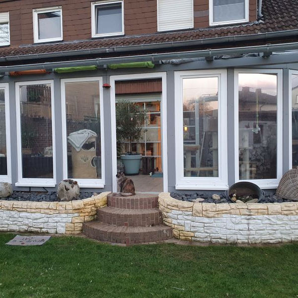 Sie nutzen das komplette Haus, Wintergarten, Garten und ihr eigenes Katzenhaus. Unser Garten ist katzensicher angelegt. Desweiteren haben wir jetzt endlich ein Gehege von 25 m2, mit Zugang ins Haus, über eine Katzenklappe, so das unsere Deckkater nicht ungewünscht mit unkastrierten Tieren zusammen kommen.