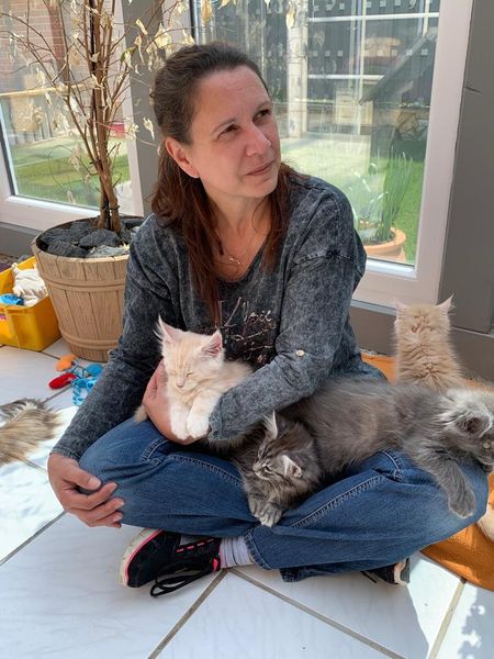 Zu unserem Namen. In der Literatur findet man "Falaysia" als Buch, in dem es um 2 Welten geht. Das Hier und Jetzt und eine Welt voller Magie, Zauber, die man durch ein magisches Tor betreten kann. Für mich ist es genau das, was das Leben mit meinen Maine coons beschreibt. Sie sind ohne Vorurteile, voller Liebe und ihre Magie erfüllt jeden Raum. Ich durfte meine Kindheit und Jugend auf einem Bauernhof erleben und Tiere waren für mich schon immer besonders. Heute erfordert mein Beruf (Altenpflegerin) sehr viel Kraft und Einfühlungsvermögen. Deshalb sind unsere Schmusetiger so wichtig für uns, weil sie in der Lage sind, uns all diese Dinge zu geben und unsere Akku wieder füllen. Eine Geburt ist dann natürlich das Größte...es ist der Gegenpart zu meinem Beruf....Leben ensteht in meiner Obhut.